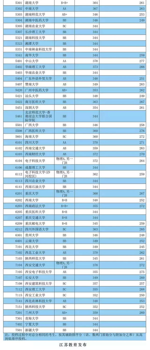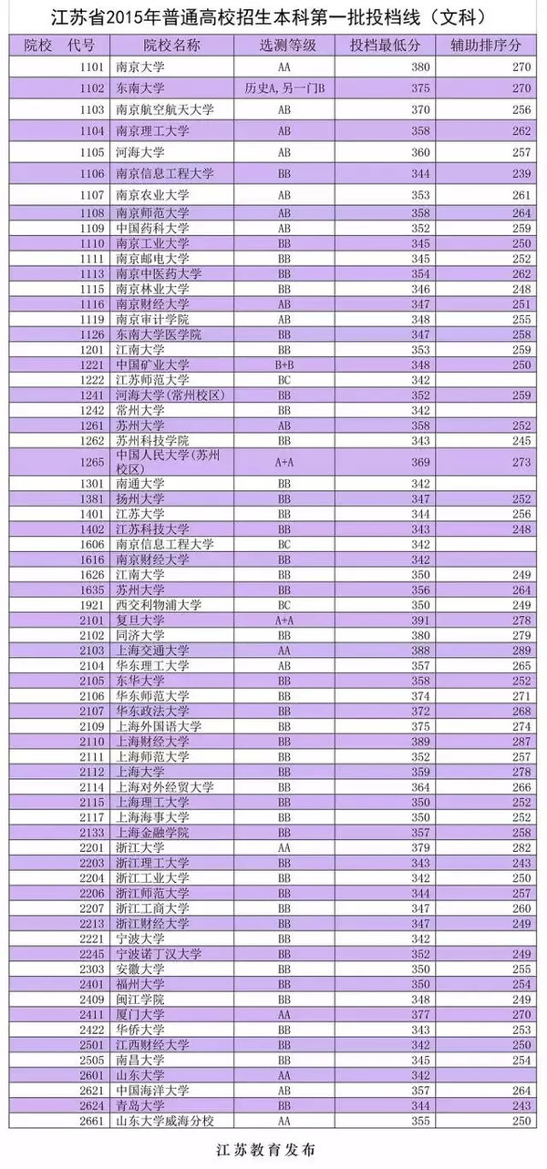 江蘇省2015年高校招生本科第一批次錄取投檔線發布