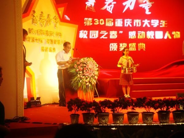 據盧波在晚會上介紹,本次活動由市委宣傳部、團市委、市教委、市學聯主辦,以“青春譜華章、校園競風流”為主題,經過網上投票、組委會遴選等程序,共有來自重慶三峽學院、重慶大學、西南政法大學等10所高校的8名個人和2個群體從全市37所高校推薦的68個候選人中脫穎而出,獲得十大“感動校園人物”稱號。