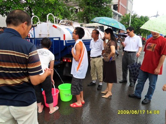 2011年6月16日13:00,學(xué)校接到緊急通知,大學(xué)城市政供水重師路段主管道突然爆裂需緊急搶修,重慶醫(yī)科大學(xué)大學(xué)城校區(qū)將面臨全面停水。縉云校區(qū)管委會(huì)領(lǐng)導(dǎo)高度重視,到現(xiàn)場安排、指揮工作,后勤辦公室心系教學(xué)、情牽師生,立即啟動(dòng)應(yīng)急預(yù)案,及時(shí)向校區(qū)各院系、部門發(fā)出緊急通知,同時(shí)做好短期停水和較長時(shí)間停水兩種預(yù)案。原定6個(gè)小時(shí)的搶修,因停電、特大暴雨的影響,延長了整整一天,后勤處領(lǐng)導(dǎo)帶領(lǐng)后勤員工,冒驟雨、戰(zhàn)困難,積極溝通協(xié)調(diào)、多方奔走,采取啟用縉云校區(qū)地下水、緊急調(diào)運(yùn)供水等有效措施,按照學(xué)校供水需求層次有條不紊依次供水,首先保證食堂的供水和學(xué)生基本生活用水,其次保障教學(xué)區(qū)域的清潔提供用水。在大學(xué)城“6.16”突發(fā)停水的過程中,后勤應(yīng)急機(jī)制經(jīng)受住了考驗(yàn),服務(wù)、保障功能得到了提升,確保了大學(xué)城校區(qū)正常的教學(xué)、工作、生活秩序。