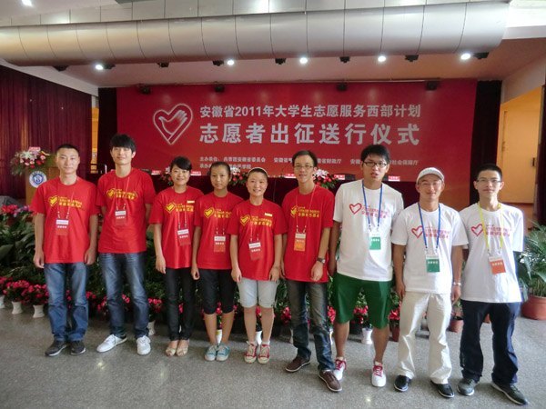 7月25日,2011年大學生志愿服務西部計劃安徽省志愿者出征送行禮儀在安徽中醫學院實行,黃山學院9名西部計劃志愿者從事了送行禮儀,并與全省其他192名志愿者一同奔赴服務炮位。