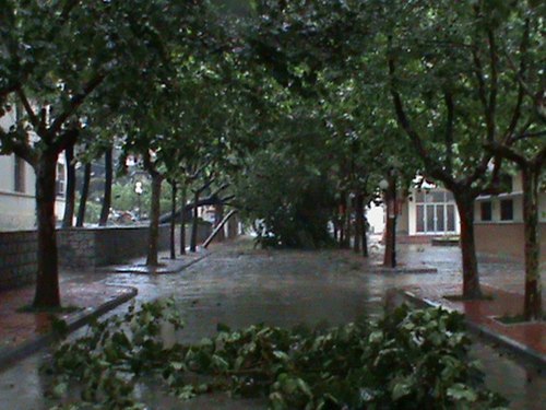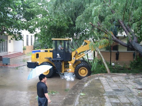 8日清早,李德民副校長帶領后勤經濟體負責人冒雨排查全校樹木傾倒、斷枝、道路積水等事情,部署、指導倒伏樹木扶正等工作。校園管理核心配合河濱物業公司、明德物業公司機構清理中心路上傾倒的樹木,力保校園道路暢通;物業服務核心排查全校電力路線、配餐室、泵房設施,消滅供電安全隱患,采取緊急措施解決東區北院配餐室倒灌題目,并安置專人負責在校園積水處掀起雨篦加快排水。
