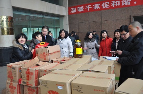 2011年12月28日上午,學(xué)校工會(huì)和離退休處牽頭組織的年終福利品發(fā)放工作在校本部圖書館、離退休活動(dòng)室、縉云校區(qū)管委會(huì)熱鬧進(jìn)行。學(xué)校黨委書記吳小翎,黨委副書記、工會(huì)主席馮躍林親臨現(xiàn)場(chǎng)為教職工送溫暖。天氣雖然寒冷,但前來領(lǐng)取福利品的教職工臉上都洋溢著暖洋洋的笑容,現(xiàn)場(chǎng)一片熱火朝天、歡樂祥和的景象。 福利品發(fā)放之前,學(xué)校工會(huì)和離退休處廣泛征求全校教職工和老同志的意見。12月20日,后勤管理處牽頭組織工會(huì)、離退休處、紀(jì)委、審計(jì)進(jìn)行招標(biāo)確定了價(jià)格和供貨商,并根據(jù)學(xué)校的實(shí)際情況對(duì)供貨商提出了貨源質(zhì)量、送貨時(shí)間、地點(diǎn)的具體要求。保證了中間環(huán)節(jié)的透明度和暢通無阻。校工會(huì)積極協(xié)調(diào)供貨商,按時(shí)保質(zhì)保量將貨物送到學(xué)校指定地點(diǎn),順利完成了2011年福利品發(fā)放工作。 在新年來臨之前,學(xué)校為教職工發(fā)放糧油等福利品,充分體現(xiàn)了學(xué)校對(duì)教職工的關(guān)愛。廣大教職工紛紛表示充分感受到了學(xué)校的人文關(guān)懷,新的一年將一如既往為學(xué)校的科學(xué)發(fā)展齊心合力、努力奮斗。 校工會(huì) 離退休處2011年12月28日