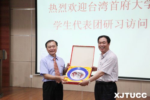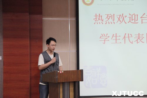 西安交大城市學院黨委馮民柱書記、黨政服務中心朱普社副主任及相關老師和學生代表在F100報告廳熱情接待了來訪師生,并進行了親切友好的互動。馮民柱書記在講話中對首府大學代表團來訪表示熱烈歡迎,并就城市學院十年來的發展情況作了簡要介紹。馮書記說,城市學院為加強兩岸高等教育的交流與合作,促使更多的學生親身體驗臺灣的教育教學和校園文化魅力,領略臺灣的風土人情,自2011年與臺灣的一些大學開展了一學期的修讀課程項目,已有五批百余名師生赴臺灣學習交流。今年九月,學院還將有第六批20名學生去臺灣學習。最后,他再次歡迎臺灣首府大學的師生們來古都西安和交大城市學院研習交流,希望兩岸學子攜手共敘友誼之情。