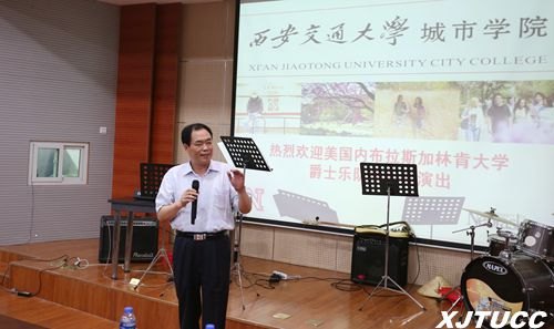 下午兩點半,來自美國內布拉斯加林肯大學的爵士樂團來西安交通大學城市學院進行交流并帶來精彩演出。西安交通大學城市學院黨委書記兼副院長馮民柱致開場詞,歡迎UNL的5名專業爵士樂手來交大城院交流,黨政服務中心副主任朱普社出席活動并熱情接待來訪樂隊。