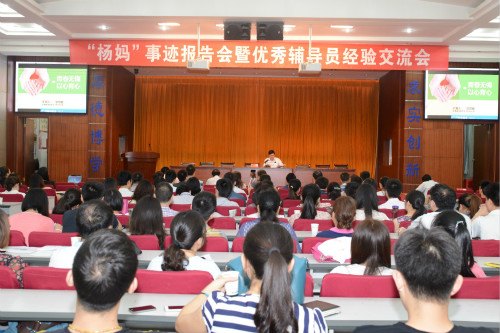 學校舉行“楊媽”事跡報告會暨優(yōu)秀輔導員經(jīng)驗交流會