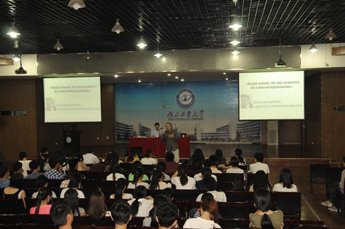 29日上午,法國南特大西洋設(shè)計學(xué)院校長Christian訪問湖北工業(yè)大學(xué)藝術(shù)設(shè)計學(xué)院,作為藝院“雙慶”學(xué)術(shù)周的內(nèi)容,克里斯蒂安校長在藝術(shù)學(xué)院四樓報告廳帶來了一場題為“設(shè)計學(xué)院―― 一種新型孵化器”的演講。藝術(shù)學(xué)院300多名師生參加,許開強(qiáng)院長主持了學(xué)術(shù)報告會。