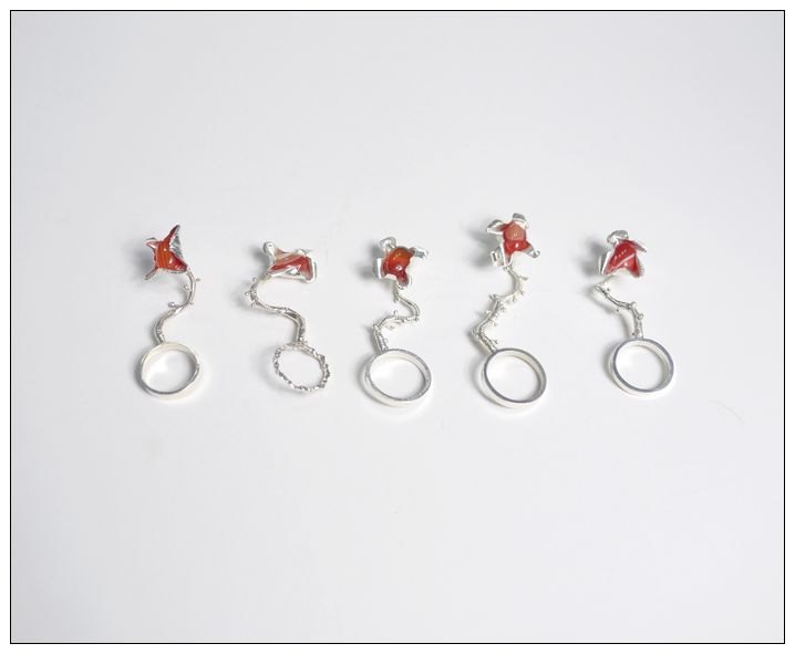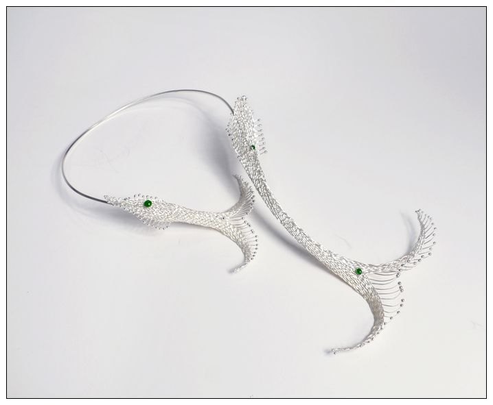 《爾》這組作品以魚的形態為創作原型,將魚兒優美的線條融入首飾設計中,配以琺瑯使整個作品富有靈氣,給人一種靈動、變化的感覺。《S和H》是一組富含商業化理念的設計作品,整體的形態呈現出簡潔的流線形,表達出了當代年青人向往的一種時尚美。