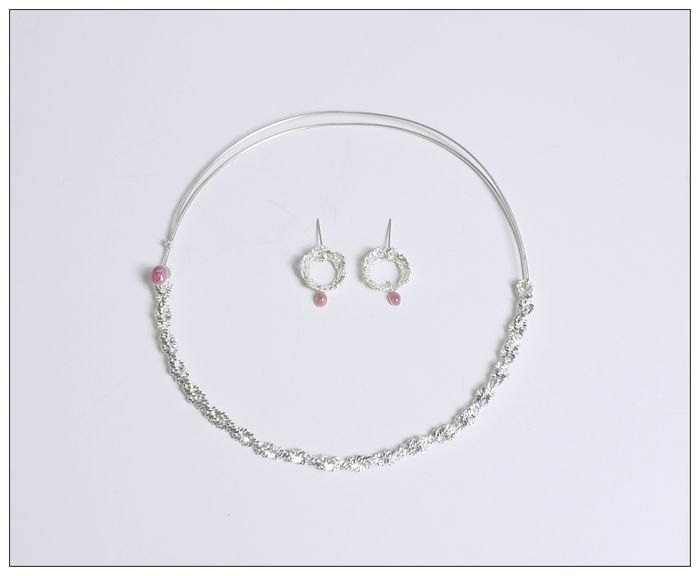 展覽展出的是孫明月在讀研究生期間的部分作品,包括項鏈、手鐲、耳釘、戒指、胸針、擺件等,分為《沉》、《似》、《爾》、《久》、《S和H》、《Deep Breath》、《子小》、《虍幾》、《見》等九個系列。