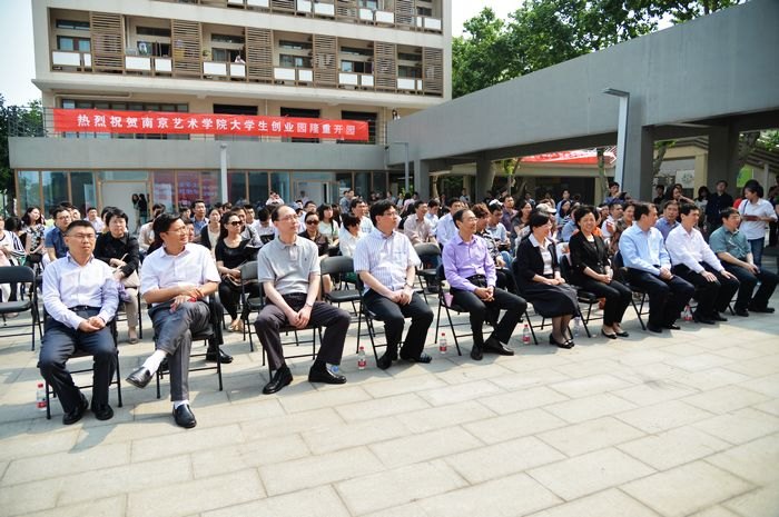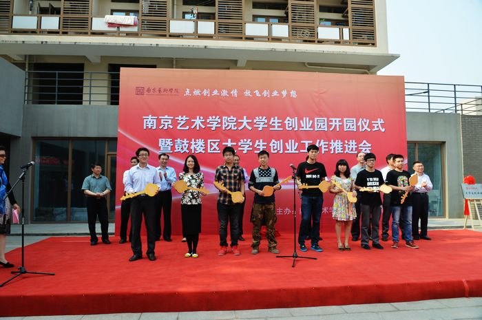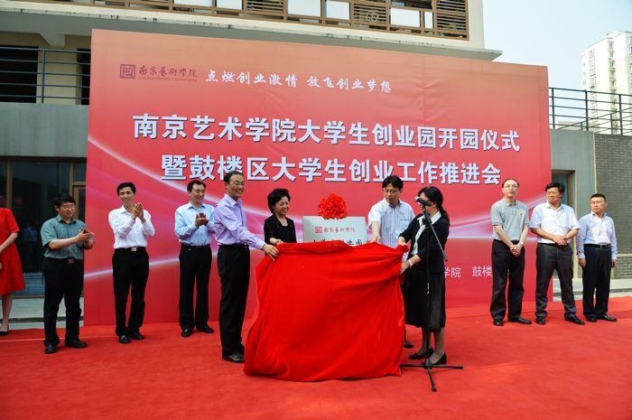 5月20日下午三點,南京藝術學院大學生創業園正式開園。出席開園儀式的領導、嘉賓有省人社廳副廳長周英,省人社廳就業管理中心主任陳健,省教育廳高校學生處處長杭連生,省高校招生就業指導服務中心主任魯學軍,市人社局副局長江萍,市人社局就業促進處處長季順祥,市人社局職業技術培訓指導中心主任王建杰,鼓樓區委常委、副區長周文中,鼓樓區人社局局長張國強,南京藝術學院黨委書記管向群,南京藝術學院院長、黨委副書記劉偉冬。鼓樓區13個街道負責人、鼓樓區大學生創業園負責人和南京藝術學院學工處、團委、教務處、研究生處、宣傳部等部門負責人和各二級學院就業工作負責人也來到了現場。