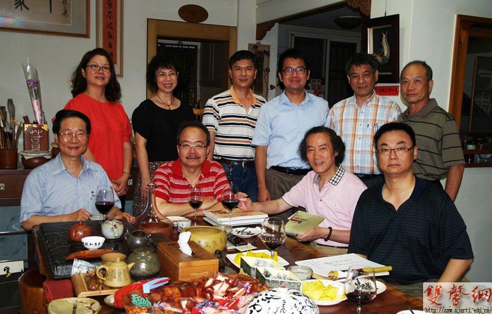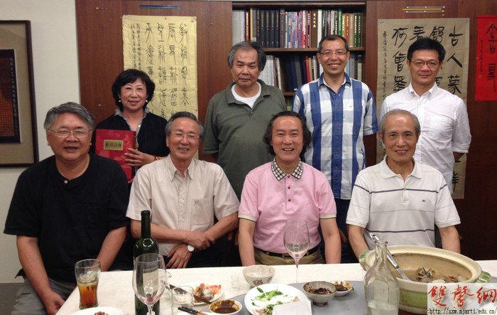 在臺北與薛平南(前排左二)、陳抱一(前排右一)、黃嘗銘(前排左一)、陳宏勉(后排左二)等臺灣書法篆刻名流歡聚、交流。