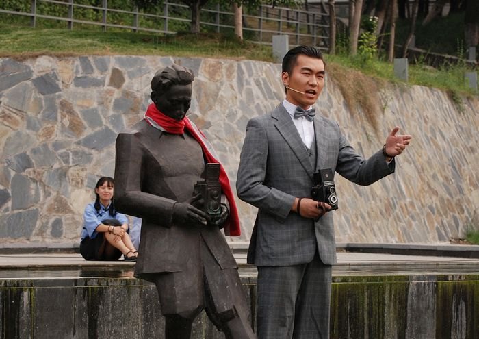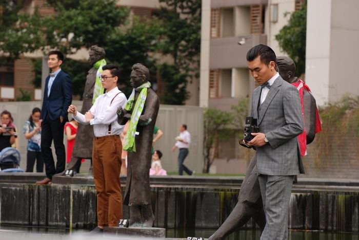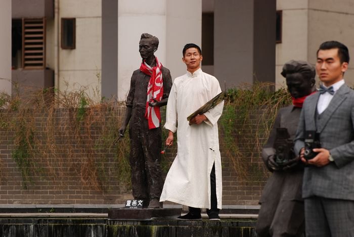 這次的活動打破了傳統(tǒng)劇場下的觀劇模式,采用行為藝術(shù)等當代流行元素來穿越古今,在一個開放的空間中,依托百歲泉內(nèi)的雕塑,借南藝老校長劉海粟和從南藝(前身上海美專)畢業(yè)的五位藝術(shù)大家之口,表達了對有著百年歷史的母校的守望和期盼。有不少同學說,這樣的戲劇形式之前沒有見過,如此新奇的演繹拉近了個人與“劇場”之間的距離,戲劇不再是一個“小眾”的藝術(shù),它應(yīng)該是演員與觀眾可以親密接觸的平等互動。雖然時間不長,但許多觀眾都對此次的活動表達了驚喜和贊賞,并且對“下一次”充滿了期待。據(jù)悉,此次拓展空間行為戲劇系列活動將圍繞“百歲泉”主題在年內(nèi)陸續(xù)推出行動二“百年的對話”和行動三“閃光的青春”,讓我們拭目以待吧!(電影電視學院 莊飛燕)