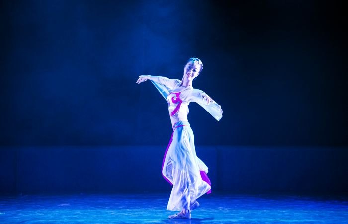 《春江花月夜》是中國古代文化中一個頗具獨特個性的作品,從張若虛的這首可謂“孤篇蓋全唐”的詩到后來的古典名曲,給了我們一種前所未有遼闊感,“滟滟隨波千萬里,何處春江無月明”,而這個舞蹈,把這種意境通過中國古典舞的風格動作、姿態和造型,體現得淋漓盡致。如詩中人跳脫出來一般,這也是舞蹈的獨特魅力所在。