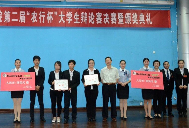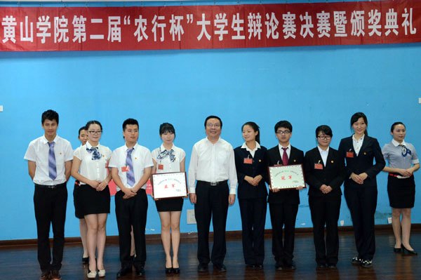 5月21日下午,黃山學(xué)院第二屆“農(nóng)行杯”大學(xué)生辯論賽總決賽暨頒獎(jiǎng)典禮在南區(qū)舉行,至此,全校“我的中國(guó)夢(mèng)·五月的鮮花”主題系列活動(dòng)畫上圓滿句號(hào)。校黨委書記徐成鋼,黨委副書記、紀(jì)委書記葉軍,農(nóng)行黃山分行副行長(zhǎng)陳靜、許健等領(lǐng)導(dǎo)出席觀看總決賽并為獲獎(jiǎng)團(tuán)隊(duì)及個(gè)人頒獎(jiǎng)。