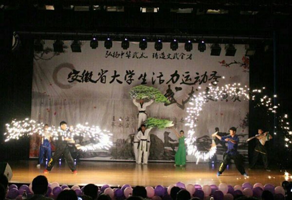 5月24日,2014年“全省大學(xué)生活力運(yùn)動(dòng)季”系列活動(dòng)首場(chǎng)比賽——武術(shù)表演賽在安徽財(cái)經(jīng)大學(xué)開(kāi)賽,黃山學(xué)院代表隊(duì)表演的《中國(guó)夢(mèng)—夢(mèng)之武》力挫群雄,榮獲一等獎(jiǎng)。