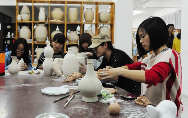 學生在藝術學院綜合實訓中心進行陶藝制作實踐