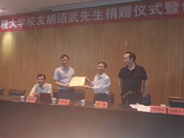校領(lǐng)導(dǎo)吳鋒代表學(xué)校感謝胡紹武先生等一批杰出校友有力地支持了武漢工程大學(xué)的建設(shè)和發(fā)展,并希望他們的善舉起到示范效應(yīng),帶動(dòng)更多的社會(huì)人士支持武漢工程大學(xué),支持高等教育發(fā)展。