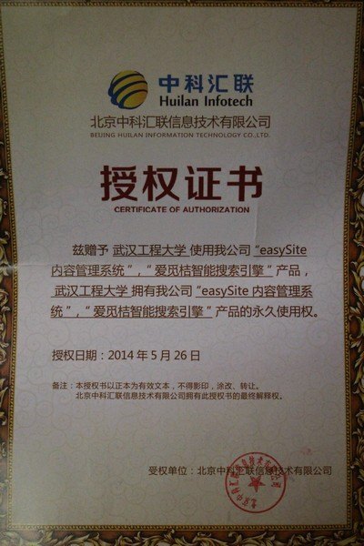 校領(lǐng)導(dǎo)吳鋒代表學(xué)校向胡紹武先生頒發(fā)了捐贈(zèng)證書(shū),感謝胡紹武先生為學(xué)校捐贈(zèng)價(jià)值20萬(wàn)元的網(wǎng)站集群(easySite內(nèi)容管理系統(tǒng))。