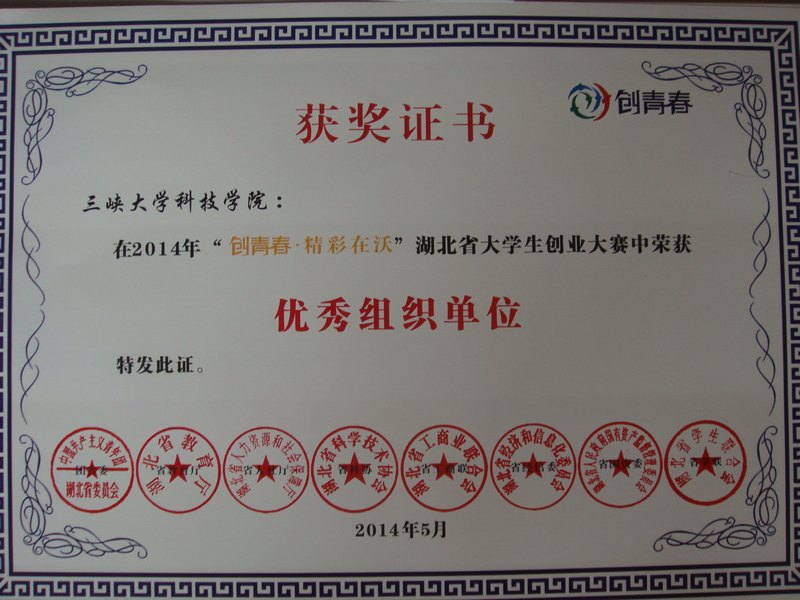 三峽大學科技學院在2014年“創青春•精彩在沃”湖北省大學生創業大賽榮獲9項獎項