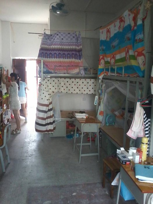 由于歷史的原因,廣西師范學院原工會樓、原幼兒園的住宿條件艱苦,沒有單獨衛生間,只有公共衛生間,學生使用很不方便;部分大房間還住著14名學生,沒有地方安置衣柜,電線插頭多且凌亂,存在較大的安全隱患;疏散通道窄,學生洗漱、晾曬存在不少的困難……