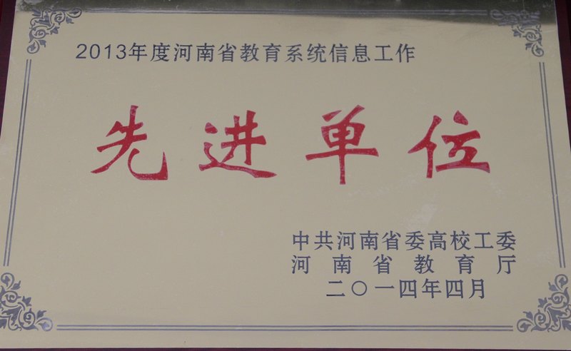 許昌學院榮獲2013年度河南省教育系統信息工作先進單位