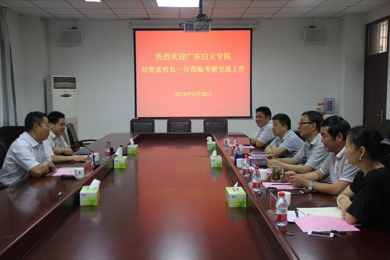 5月28日,廣東白云學院副校長劉貴富一行來許昌學院考察,許昌學院在辦公樓第一會議室召開座談會。副院長張建軍出席座談會,院辦、教務處、科研處、經濟學院等相關部門負責同志參加座談會。座談會由院長辦公室副主任常小靜主持。
