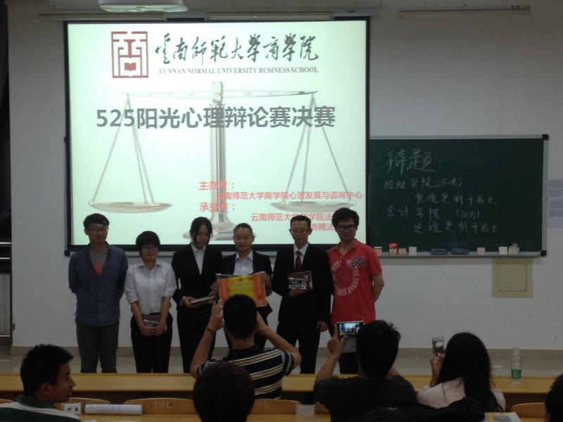 本次比賽規模盛大,云南師范大學商學院藝術、工信、會計、經財、教育、語言、工管、法學八個學院全部參加。各學院同學積極報名,認真準備,踴躍參賽;圍繞“大學生心理健康自我調節與外界關懷誰更重要”、“社會應該支持同性戀還是遏制同性戀”、“心理健康教育的主體是學校教育還是家庭教育”、“大學生都要談一次戀愛是否是正確的價值觀”四個辯題進行了初賽對陣。