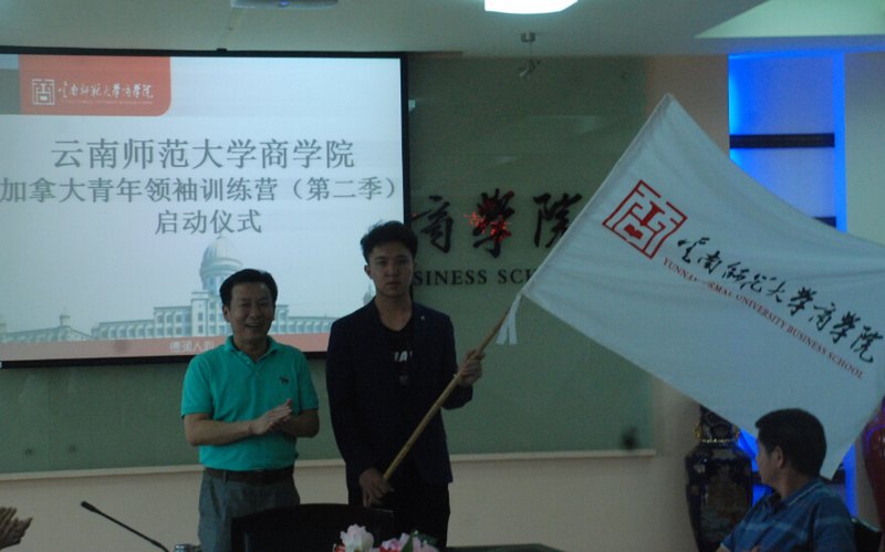 5月29日下午,云南師范大學商學院在海源校區慧宇樓102會議室為學生舉行第二季云南師范大學商學院加拿大青年領袖訓練營出征儀式,會議由何福全副書記主持,學校理事會理事長劉學民、校長王昆來、黨委書記章秉純、副校長杜國海、以及全體中層干部、此次海外課堂的學員們參加了此次出征儀式。會議上杜國海副校長作為第一季云南師范大學商學院加拿大青年領袖訓練營的帶隊老師首先進行了講話,向本次出行的團隊介紹了加拿大課堂項目的發展趨勢,告訴學員們海外學習的目的和任務,希望此次團隊通過游學,能有新的成長,展現商院學子的新風采。本次帶隊教師會計學院的黨總支書記楊高茂老師也做了發言,作為海外課堂的帶隊教師,感到十分光榮,也感到責任重大,希望在本次的訓練營項目,積極組織開展各項工作,學習觀察了解好的國際經驗,多聽多看多思,開拓視野,更好的發展自己,與另一名帶隊老師來自語言文學學院的輔導員林穎老師出色的完成任務,在學習中體驗,保證學生出行的安全。本次出行的學生代表王悅瑾也在發言中表示,希望在此次行程多多了解異國他鄉的風土文化,開闊自己的視野,領略和實踐多元的文化結構,學員們一定會遵守團隊出行章程,配合帶隊老師的工作,在游學的過程中出色完成任務。會上,王昆來校長以“海外短期學習——微留學與信念推導”為主題發表講話,他從現代化、國際化教育方式,跨文化學習方式,體驗式的教學模式,多元化、多結構教育實踐對現階段高等教育進行了深刻解讀并描繪了云南師范大學商學院開展的微留學項目的未來發展的宏偉藍圖。王校長在發言中對本次出行團隊寄予了厚望,希望未來商院學子能夠主動適應高等教育國際化的時代趨勢,以主動熱情的姿態走出校門、走出國門,收獲快樂、收獲成長。會議的最后,劉學民理事長向此次出行的團隊授旗,與會校領導給出行的帶隊老師和學員們授予;蘸完爢T證,并期待學員們能榮譽歸來。會后校領導還同與會人員和學員們親切合影留念。