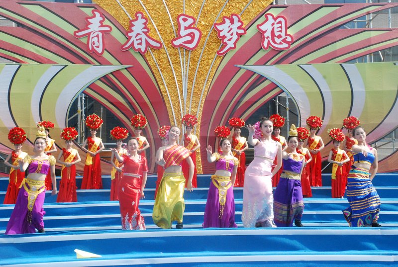 5月30日下午,由云南省委、省政府主辦,省委宣傳部、省委高校工委、省教育廳、團(tuán)省委、滇中產(chǎn)業(yè)新區(qū)、云南省民辦教育協(xié)會(huì)、云南廣播電視臺承辦的“青春與夢想——‘云之南’藝術(shù)團(tuán)高校專場慰問演出”在嵩明縣職教園區(qū)云南工商學(xué)院中心活動(dòng)廣場舉行。此次慰問演出云南師范大學(xué)商學(xué)院藝術(shù)學(xué)院共選派出80名演員,與來自省內(nèi)著名藝術(shù)家和省內(nèi)7所高校及8所民辦職業(yè)高校的老師、學(xué)生參加演出。