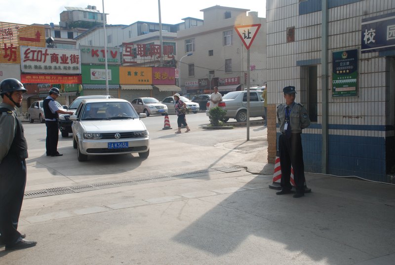 6月3日早8:00時許,云南師范大學(xué)商學(xué)院梁正卿副校長親臨學(xué)校前后大門進(jìn)行督察,指導(dǎo)。同時,校保衛(wèi)處與眾安保安公司值班人員一起,加強(qiáng)門衛(wèi)檢查力度,按照學(xué)校準(zhǔn)入制度的相關(guān)規(guī)定,對所有進(jìn)出校園的全校師生憑校園一卡通,外來人員持有學(xué)校的“臨時出入證”,車輛憑“車輛出入證”準(zhǔn)入,暫時無證的已通知及時辦理,來訪人員需出示有效證件進(jìn)行登記準(zhǔn)入,所有入校人員做到有序管理,門崗工作人員在值班過程中做到有禮有節(jié),嚴(yán)格管理。