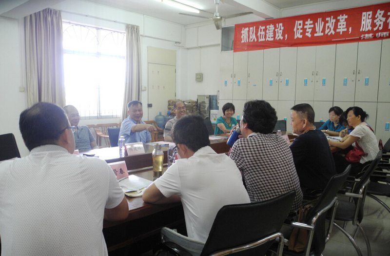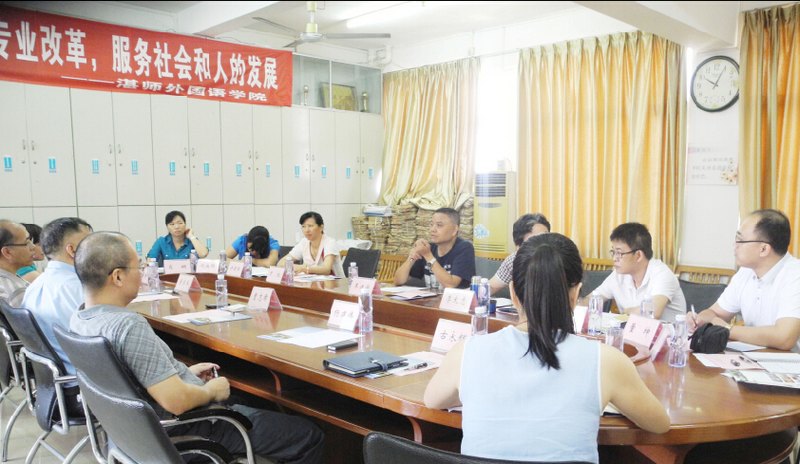 圖片說明: 廣東石油化工學(xué)院考察人員與湛江師范學(xué)院外國語學(xué)院領(lǐng)導(dǎo)親切交流