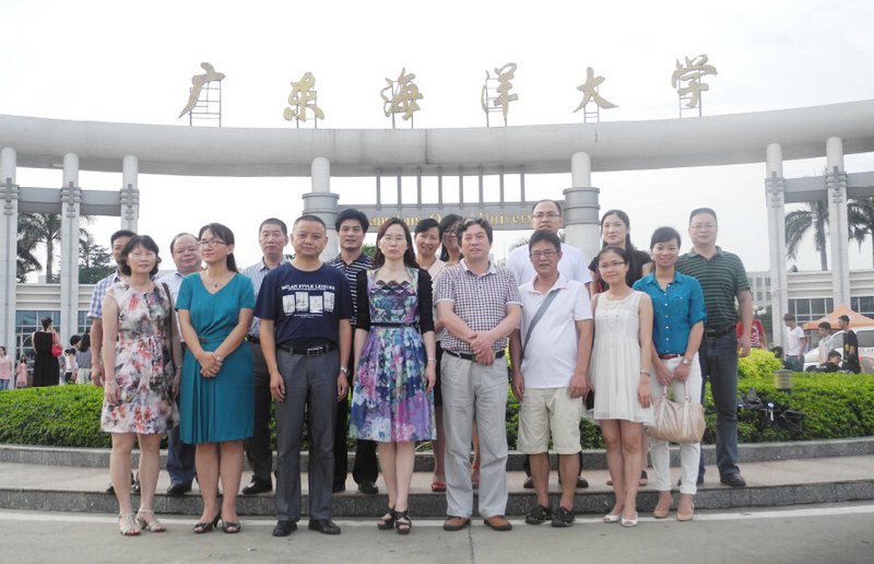 圖片說明: 廣東石油化工學(xué)院考察人員到廣東海洋大學(xué)外國語學(xué)院考察學(xué)習(xí),并與該院領(lǐng)導(dǎo)在校門前留影
