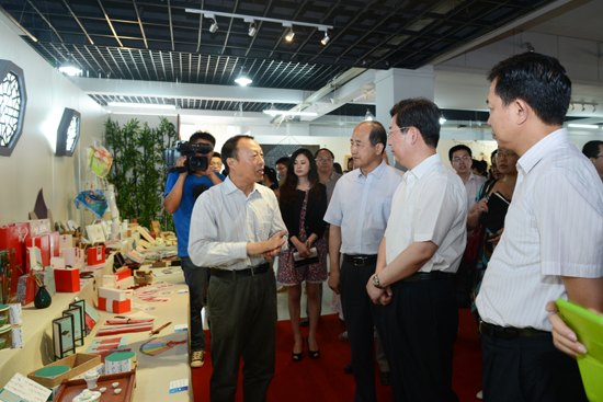 在聽取藝術設計學院負責人關于學院的辦學歷史、學科特色、學生就業等情況簡要介紹后,樓陽生部長詳細詢問了湖北工業大學產品設計專業的發展情況和辦學經驗,得知湖北工業大學產品設計專業在2014年中國科教評價研究中心名列前三甲,他對湖北工業大學藝術設計學科的建設和發展表示了深切關懷,并開始認真地觀看展廳中的優秀設計作品。
