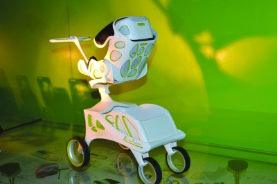 “綠色”也是設計的關鍵詞之一。在眾多作品中,一架特殊的“嬰兒車”吸引了大家注意。普通的嬰兒車用了兩年就成了擺設,而這款嬰兒車,能夠伴隨兒童各種成長階段,是最忠實的“童年伙伴”。設計者王祥介紹,這款嬰兒車具有多項功能,輪子上面的方形空間可以當成孩子的“睡床”,當孩子長大了,睡床還可以容納其他家居用品,睡床上面還有一個安全座椅,媽媽們把孩子們放上面,嬰兒車就成為一個袖珍的手推車。帶寶寶的同時,推著車,就能舒心逛超市。同樣滿足現代人需要的還有一款“魔法行李箱”,表面是一個行李箱,打開卻是一張舒適的床。
