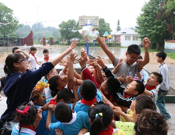 活動中,鳴山小學的小學生們表演了由志愿者們此前精心指導編排的小品《心愿》、兒童劇《同班的你》等節目,贏來了陣陣掌聲。志愿者們還為小學生們準備了精美的禮物,并進行了游戲互動。
