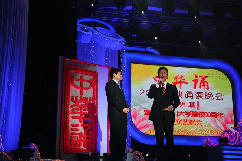 4月3日晚,“中華誦-2010經典誦讀晚會(清明篇)暨慶祝廈門大學建校89周年大型文藝晚會”在廈門大學舉行。教育部副部長李衛紅,福建省政協副主席郭振家,廈門市委常委、宣傳部長洪碧玲,市委常委、副市長詹滄洲,廈門大學黨委書記朱之文,校長朱崇實出席了晚會,教育部語言文字應用管理司、語言文字信息管理司、中國教育電視臺、語言文字應用研究所,以及上海市、江蘇省、山東省語委辦的有關同志也一同觀看了晚會。晚會由教育部、國家語委、中央文明辦主辦,廈門大學、中國教育電視臺承辦,廈門市委宣傳部、文明辦、廈門廣電集團、新浪網協辦。圖片來源:新浪教育